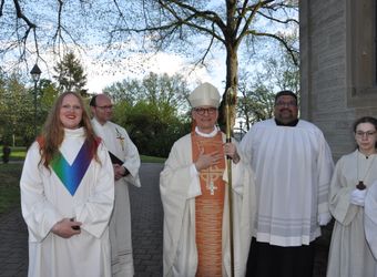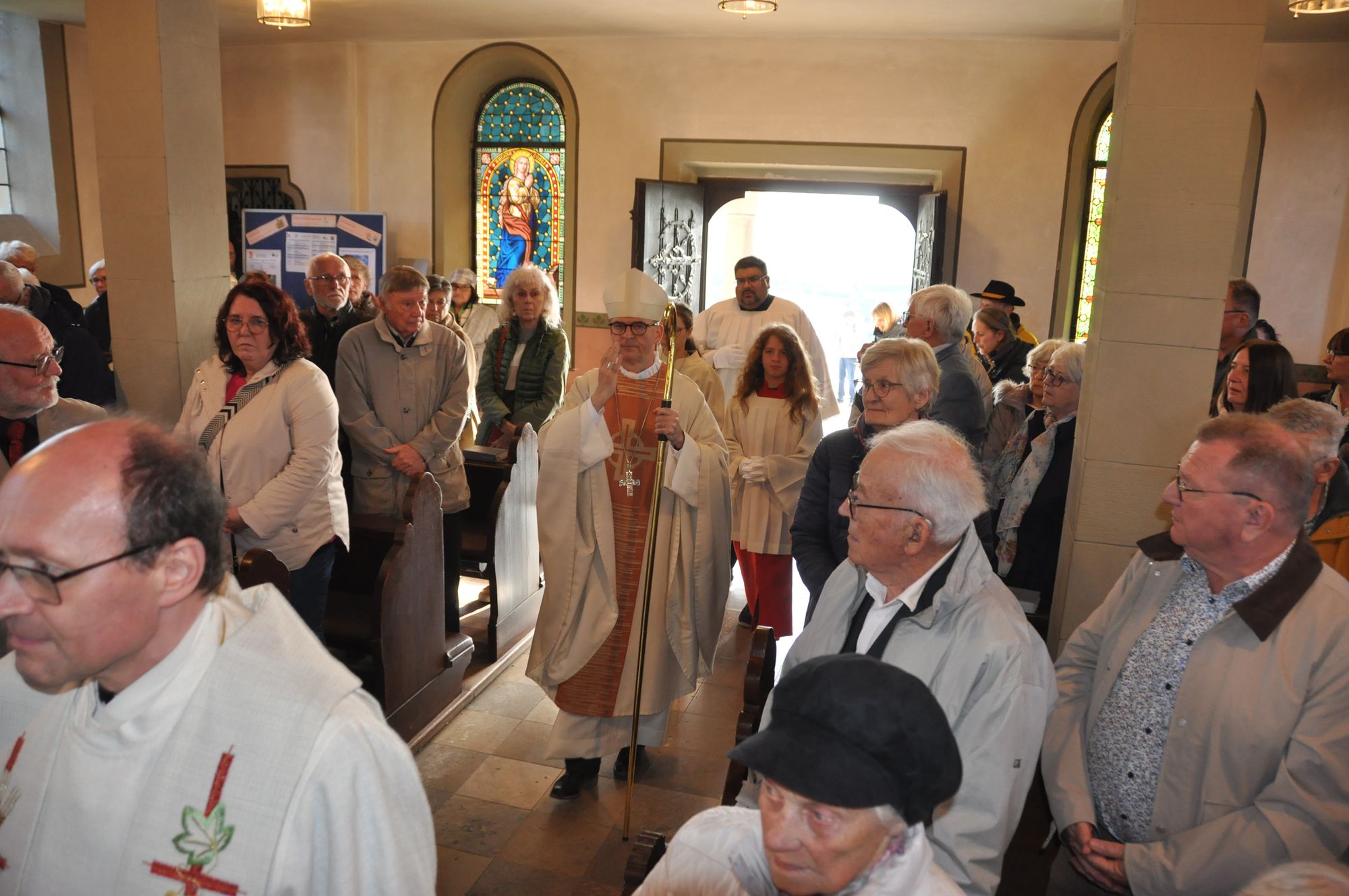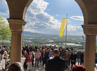 Inspiration zog Bischof Jung auch aus der Bezeichnung „fränkisches Lourdes“ für das Zeiler Käppele. „Beim Kreuzweg geht es um das reine Herz, das mitfühlt“, verwies er auf die Reinheit des Herzens der Gottesmutter: „Sie möge uns beistehen in unserem Leid, bei unseren Kämpfen, in unseren Mühen, mit den Beschwernissen des Lebens umzugehen.“ Im anschließenden Pontifikalgottesdienst ermutigte der Bischof mit Bezug auf das Johannesevangelium vom Auferstandenen am See von Tiberias die Besucher, „unsere Netze auf der anderen Seite auszuwerfen, damit Er unsere Leere fülle und auch in unserem Leben Ostern werde“.