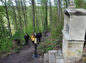 Seit fünf Jahren setzte sich in Zeil die Projektgruppe für die Restaurierung des 1880 eingeweihten Kreuzwegs zwischen der Stadt und dem Käppele auf dem Berg ein. Die unter Denkmalschutz stehenden Stationen enthalten filigrane Reliefs des Bamberger Bildhauers Philipp Dorsch. Vor der offiziellen Segnung ging Bischof Jung trotz des Regens den Fußweg, um die Kreuzwegstationen selbst in Augenschein zu nehmen. Altbürgermeister Christoph Winkler, Pastoralreferentin Sandra Lohs, Dekan Kurt Wolf und Mit-Initiator Georg Brecht erläuterten unterwegs geschichtliche Details und die Gestaltung der Stelen vor jeder Station. Sie enthalten geistliche Impulse, Infos zur Natur und Actionbounds für Familien. Lohs bezeichnete den Kreuzweg als „überzeitliche Brücke“, die Jesu Leidensweg mit „existentiellen Fragen unserer Zeit“ verbinde.