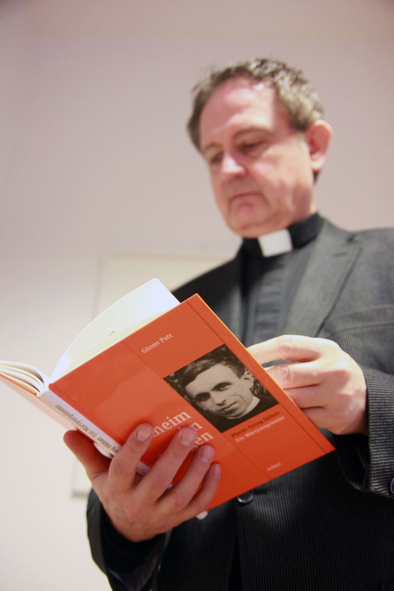 Würzburg (POW) Anlässlich der Seligsprechung des Märtyrerpriesters Georg Häfner (1900-1942) hat der Postulator im bischöflichen Seligsprechungsverfahren, Domdekan Monsignore Günter Putz, das Buch „Daheim im Ewigen: Pfarrer Georg Häfner – ein Märtyrerpriester“ herausgegeben. Zu Wort kommen Zeitzeugen, die während der Zeit des Beginns des diözesanen Erhebungsverfahrens zu Georg Häfner befragt wurden. Das im Echter-Verlag Würzburg erschienene Buch will mit diesen Zeugnissen die spirituelle Gestalt eines Priesters aufleuchten lassen, der ganz und gar in der Wirklichkeit Gott zuhause war, daheim im Ewigen, und deshalb bis zum Zeugentod fähig war, sein Leben aus dem Dasein Gottes zu gestalten.