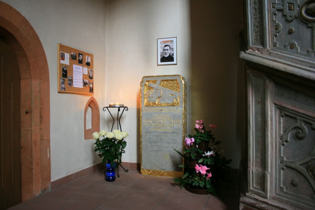 Es war der 1. Dezember 2007, der Vorabend zum 1. Advent. Goldschmied Michael Amberg und seine Frau Fides Amberg-Hartmann überraschten uns damit, daß sie unserem Pfarrer Häfner, der schon als Junge oft zum Ministrieren in unsere Kirche gekommen war und hier auch seine Primiz gefeiert hatte, in unserer Klosterkirche eine Gedenkstätte errichten wollten.