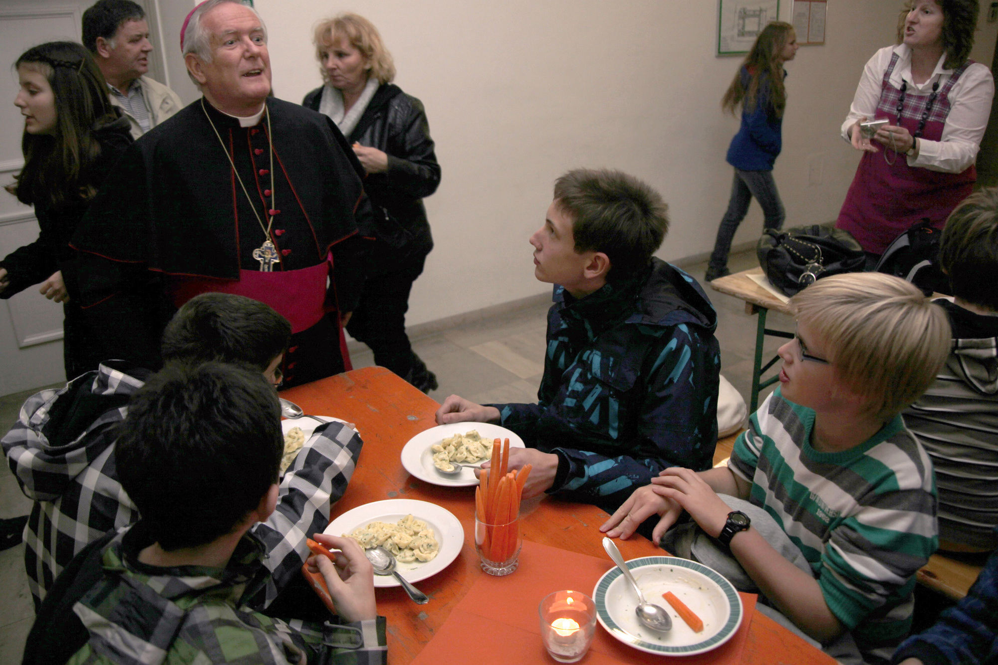 Für die musikalische Gestaltung des Gottesdiensts sorgte der Chor „Concento“ aus Hopferstadt. Beim Abendessen im Kilianeum-Haus der Jugend im Anschluss an den Gottesdienst nahm sich der Bischof viel Zeit, den Jugendlichen und ihren Begleitern zu begegnen: Unter anderem posierte er geduldig für zahlreiche Erinnerungsfotos, ging von Tisch zu Tisch, um den Gläubigen für die Teilnahme am Gottesdienst zu danken, und schrieb wiederholt Autogramme.