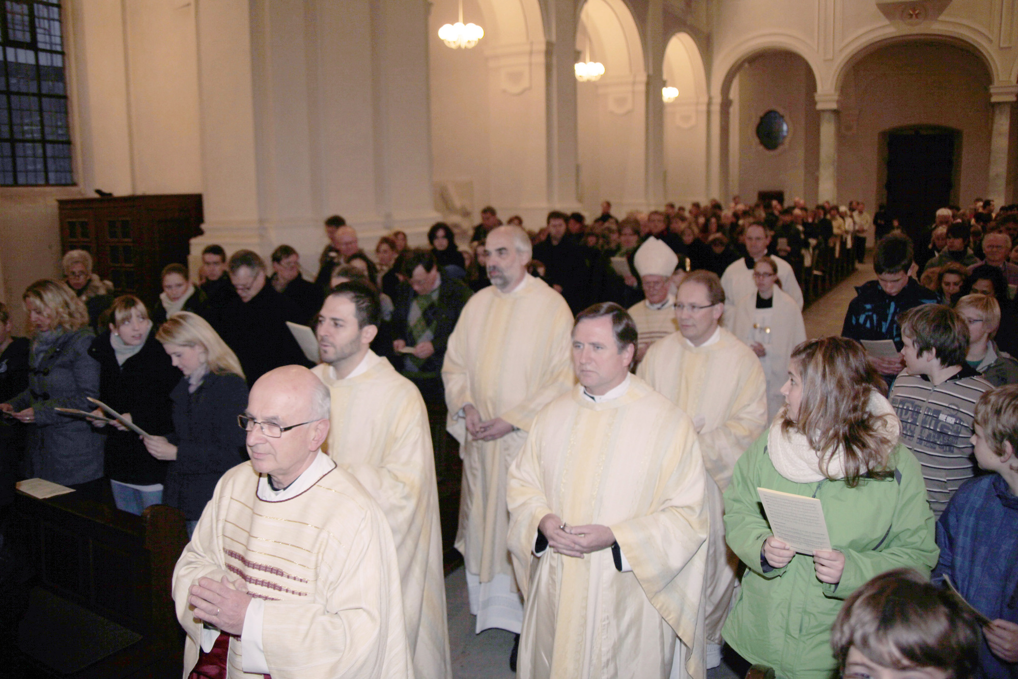 Würzburg (POW) Bischof Dr. Friedhelm Hofmann hat die Firmlinge des Jahres 2011 dazu aufgefordert, sich mit ihren ganz persönlichen Talenten für eine bessere Welt einzusetzen. „Du bist stark, weil Du einmalige Gaben hast, die ein anderer nicht hat, und Gottes Geist Dir Kraft zum Guten gibt“, sagte er vor rund 400 Gläubigen bei einem Gottesdienst am Christkönigssonntag, 20. November. Neben zahlreichen im zurückliegenden Jahr gefirmten Jugendlichen und Erwachsenen nahmen auch deren Eltern, Geschwister und Paten an der Feier teil. Diese fand wegen des derzeit geschlossenen Doms in der Seminarkirche Sankt Michael statt.