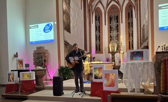 - Zu Gott: Der letzte Teil wurde von Gemeindereferent Ulrich Nottka an der Gitarre gestaltet. Ein bewegendes Zwiegespräch über den Mut von Sarah Brimer und Christiane Probst sowie Sarah Brimers persönlicher Text „Martha steht nicht auf“ luden zur Reflexion ein. Gemeinsam sang die Gemeinde „Meine Hoffnung und meine Stärke“ und „Jesus, Erlöser der Welt“.