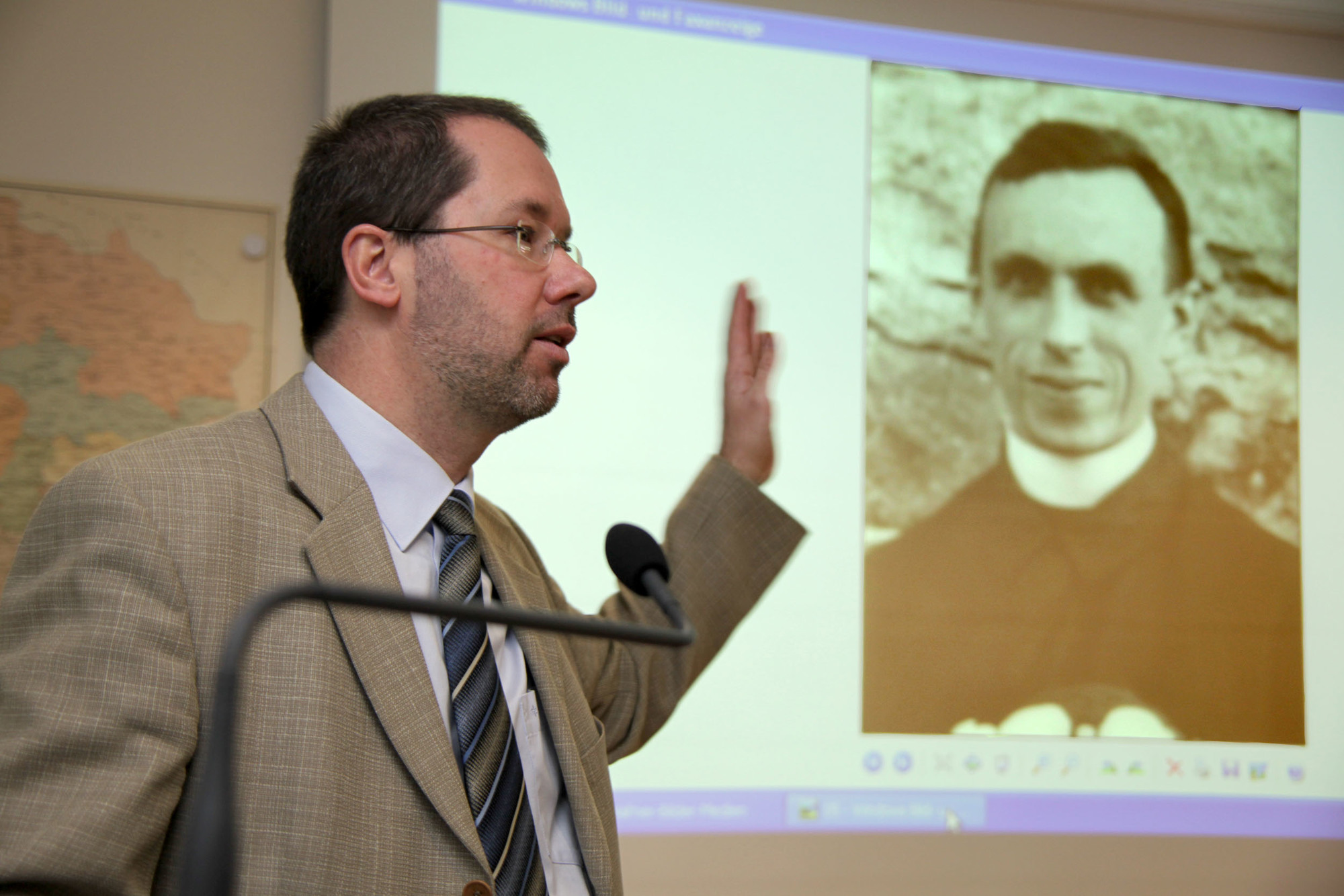 Würzburg/Oberschwarzach (POW) „Der Pfarrer hat zwei Köchinnen, da genügt doch eine vollkommen für die Pfarrei. Wenn diese nicht genügt, dann gar keine. Außerdem verpachtet der Pfarrer Land. Solche Vorteile müssen ihm genommen werden. Ich bitte Sie, hier einmal anzupacken.“ Äußerungen über Pfarrer Georg Häfner, die in einem Gestapo-Bericht über ihn stehen; geschrieben in einem Brief der NSDAP-Ortsgruppe Bimbach an den Kreisleiter in Kitzingen im Jahr 1941. Die beglaubigte Kopie des gesamten Berichtes der Gestapo aus dem Staatsarchiv Würzburg und weitere Zeitzeugnisse über den künftigen Seligen Georg Häfner, beispielsweise Taufurkunde und Testament, sind im Diözesanarchiv gesammelt. „Viele Fotos und Urkunden haben wir von Privatleuten aus Häfners Umfeld bekommen“, sagt der Direktor des Diözesanarchivs Würzburg, Professor Dr. Johannes Merz.