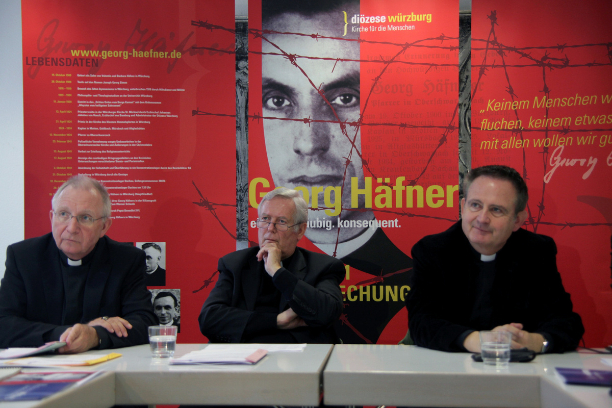 Der Bischof lud alle Katholiken im Bistum Würzburg zur Vorbereitung und zur Feier der Seligsprechung ein. Das Motto versuche, Häfner so darzustellen, wie er sich den Menschen von heute präsentiere. Als einfacher Mensch habe Georg Häfner ein offenes Ohr für die sozialen Fragen seiner Zeit gehabt. „Er war ein Priester, der seinen Auftrag in der unmittelbaren Begegnung mit den Menschen sah.“ Häfners Briefe aus dem Gefängnis und aus dem Konzentrationslager Dachau zeigten, wie er den Weg der Nachfolge Jesu verstanden habe. Der künftige Selige sei ein tiefgläubiger Mensch gewesen. Konsequent sei er im Konzentrationslager seinem Gewissen gefolgt, unterstrich Bischof Hofmann.