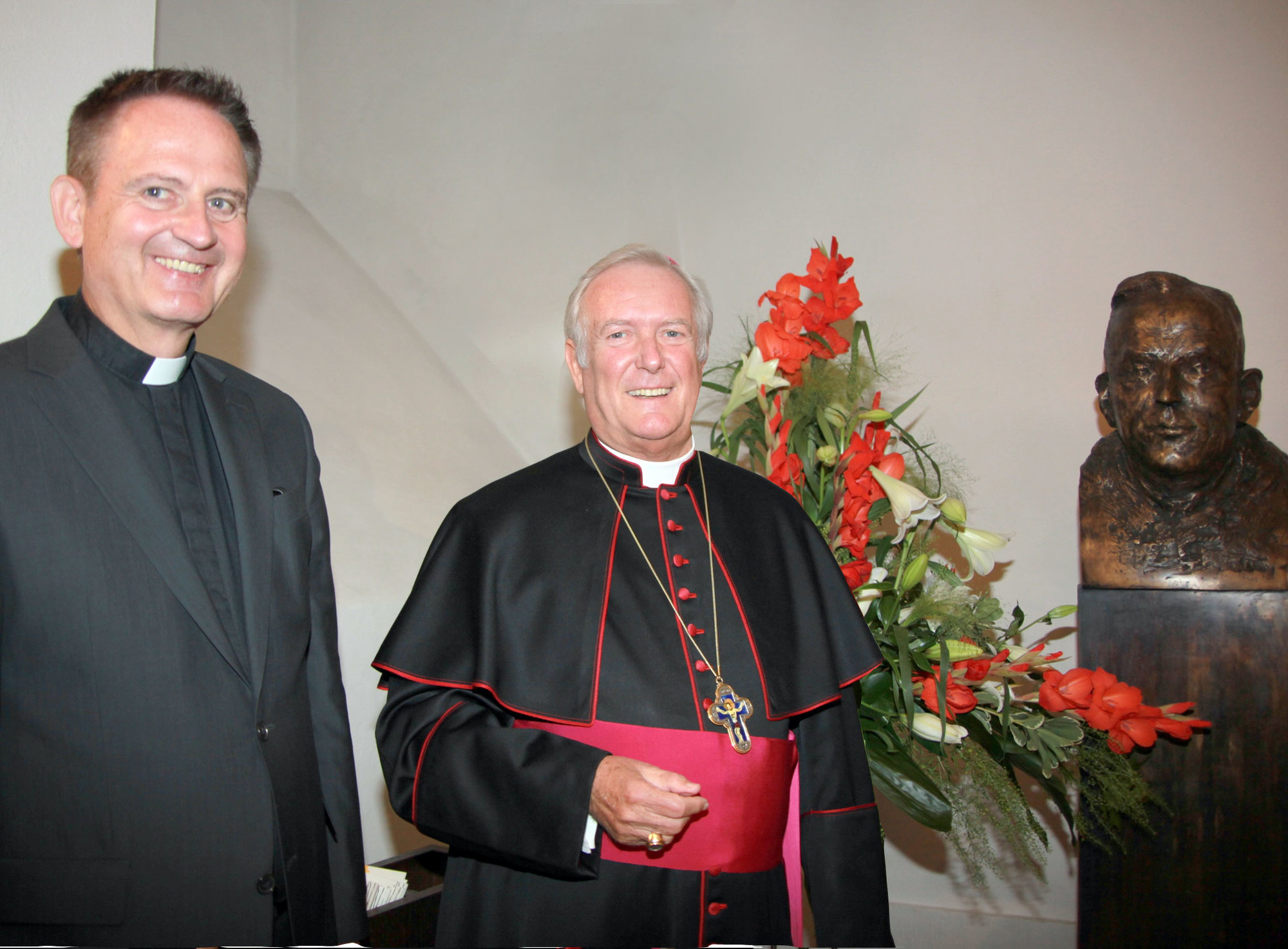 Würzburg (POW) Am Grab von Pfarrer Georg Häfner in der Kilianskrypta des Würzburger Neumünsters hat Bischof Dr. Friedhelm Hofmann am Mittwoch, 8. September 2010, die Nachricht verkündet: „Die Seligsprechung für den im Konzentrationslager Dachau umgekommenen Märtyrer Pfarrer Georg Häfner findet 15. Mai 2011, dem Sonntag der Geistlichen Berufe, in Würzburg statt.“ Erzbischof Angelo Amato, Präfekt der Päpstlichen Kongregation für die Selig- und Heiligsprechungsprozesse, wird als offizieller Vertreter von Papst Benedikt XVI. an diesem Gottesdienst teilnehmen. Das habe ihm der Vatikan in einem Schreiben des Staatssekretariats mitgeteilt.