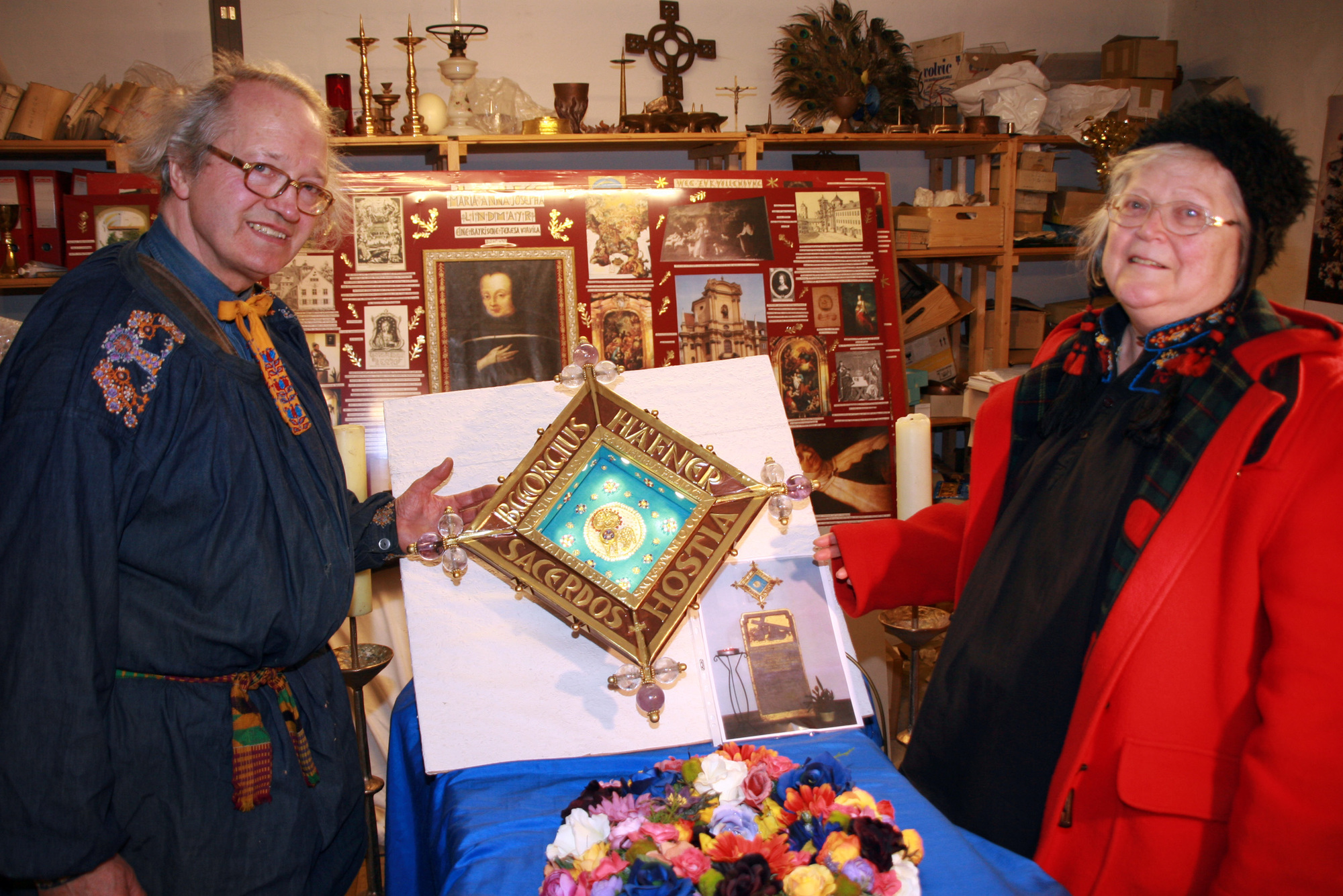 An den Vorbereitungen zur Seligsprechung Georg Häfners beteiligen sich die Ambergs nicht nur mit dem vorliegenden Bildband, sondern bringen auch ihre jahrzehntelange Erfahrung im Erschaffen und Restaurieren von sakralen Kunstwerken ein. Für die Kirche im Karmelitinnen-Kloster Himmelspforten vergoldeten sie den Grabstein von der Beisetzung der Häfner-Urne aus dem Jahr 1942. Für den Platz über dem Grabstein erschufen sie ein prachtvolles Reliquiar von Pfarrer Häfner. Das über Eck gestellte Quadrat mit zwölf in Kreuzform angeordneten Edelsteinen aus Bergkristallen und Amethysten soll auf das himmlische Jerusalem verweisen. Die Mitte des Reliquiars besteht aus der Darstellung des Opferlamms Jesus Christus. Dessen Herzenswunde zeigt die „wertvollste“ Reliquie des Kunstwerks: einen Knochensplitter von Georg Häfner, der bei der Exhumierung seiner Urne 1982 entnommen wurde.