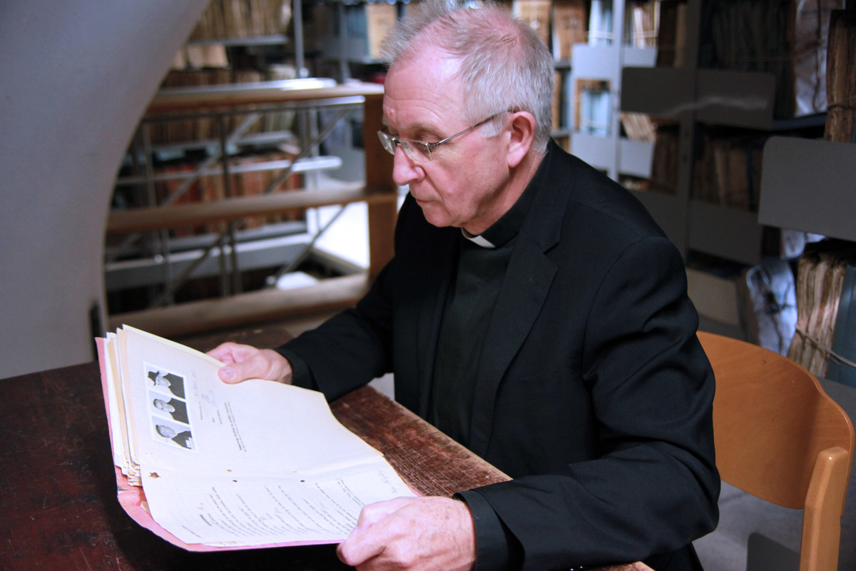 Würzburg (POW) Größe: 176 cm; Gestalt: schlank; Haltung: straff; Gang: lebhaft; Gesichtsform: oval, gesund; Kopfhaar: mittelbraun, dicht; Augen: dunkelbraun; Stirn: zurückweichend, hoch; Nase; wellig, groß; Ohren: oval, groß; Mund: klein, wulstige Lippen; Zähne: lückenhaft; Kleidung: einfach. Kurz und knapp beschreibt der Personalbogen der Staatspolizei Würzburg den Oberschwarzacher Pfarrer Georg Häfner. Datiert am 31. Oktober 1941, am Tag der Einlieferung Häfners ins Gefängnis. Das Fangnetz des NS-Staats hat sich für den 41-jährigen Priester zugezogen, das Räderwerk des Unrechtsregimes hat bis ins kleinste Teil funktioniert: Anzeige, Unterrichtsverbot, Auseinandersetzung um die Ehe und den Tod des Oberschwarzacher Oberforstwarts. „Staatsabträgliches Verhalten“ gibt die Geheime Staatspolizei, Außendienststelle Würzburg, schließlich als Grund für die Verhaftung an; angeordnet von oberster Stelle, vom Reichssicherheitshauptamt Berlin mit Schnellbrief vom 3. Oktober 1941: „Unter Bezugnahme auf den dortigen Tagesrapport vom 25.8.41 teile ich mit, dass der Reichsführer-SS gegen Häfner längere Zeit Schutzhaft und Überführung in ein KZ.-Lager angeordnet hat. Ich ersuche daher, Häfner sofort in Haft zu nehmen.“ Die Akten der Gestapostelle Würzburg, die im Staatsarchiv Würzburg aufbewahrt werden, geben einen detaillierten Einblick in das Vorgehen des NS-Regimes gegen Pfarrer Häfner. Kopien der Akten finden sich im Diözesanarchiv Würzburg.