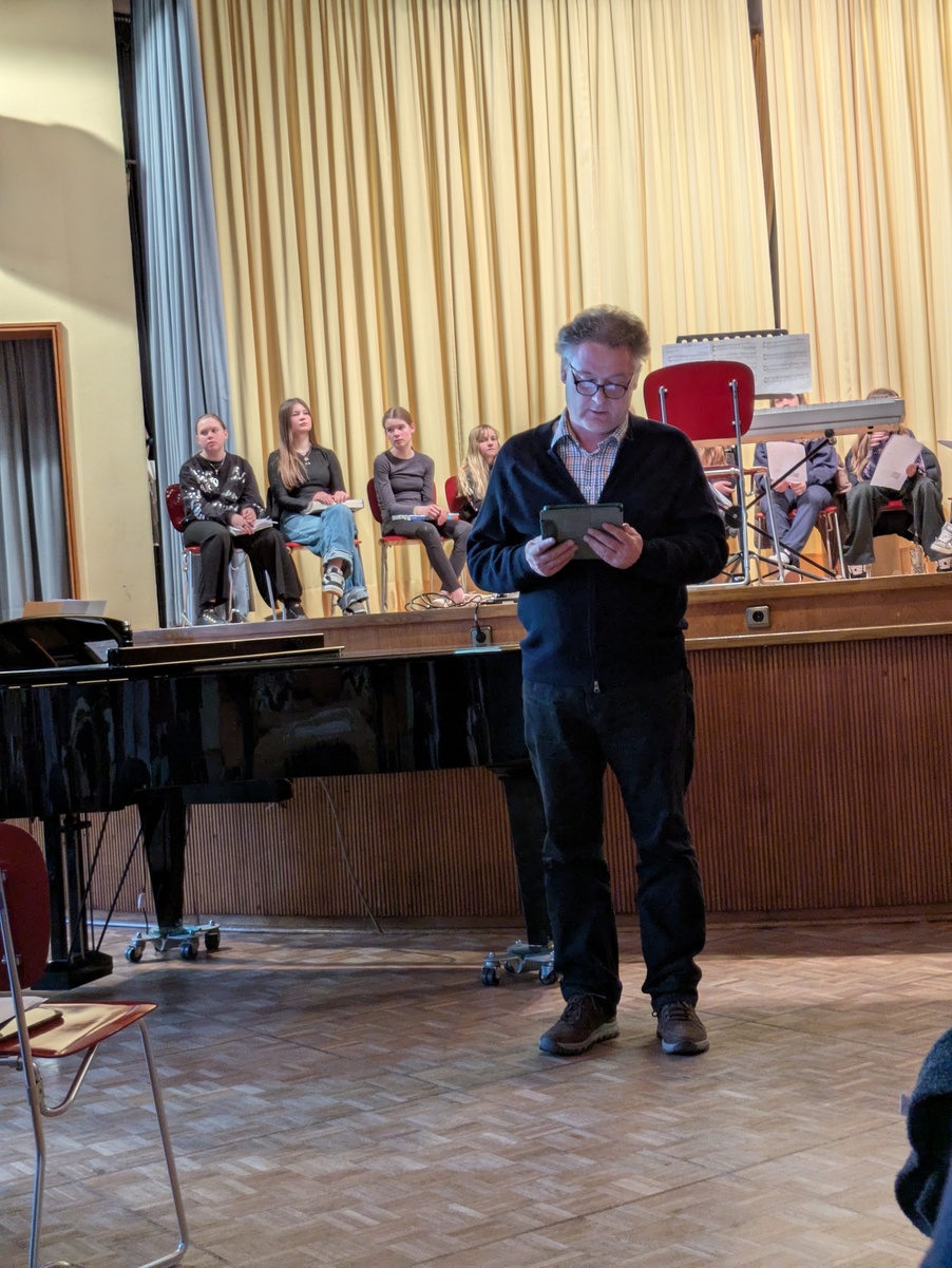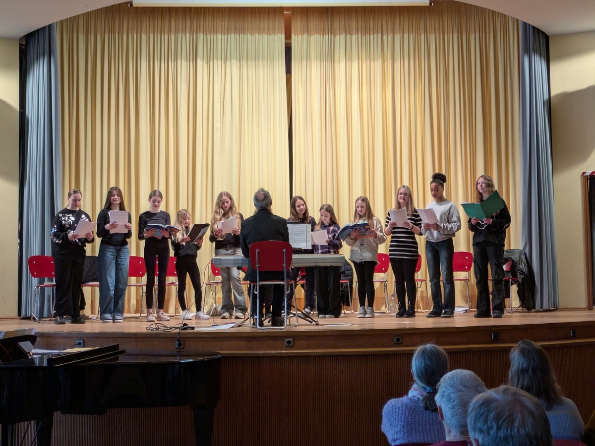 Solist*innen für die Instrumentalstücke waren die Schülerin Lotta Vogt an der Querflöte, Dr. Claudia Breitfeld – selbst über 30 Jahre Musiklehrerin an der Schule und langjährige Mitgestalterin der Abendgesänge an Orgel und Violine, aber auch textlich mit Sprechmotetten und anderen kreativen Elementen - an der Violine und Rainer Oberste-Dommes an der Klarinette.