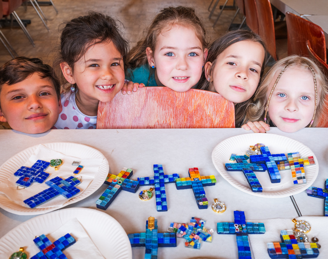 Es wurden Mosaikkreuze gebastelt, die die Kinder an ihre Zeit der Kommunionvorbereitung erinnern sollen. Durch die Karwoche war ja das Thema "Kreuz" top aktuell.