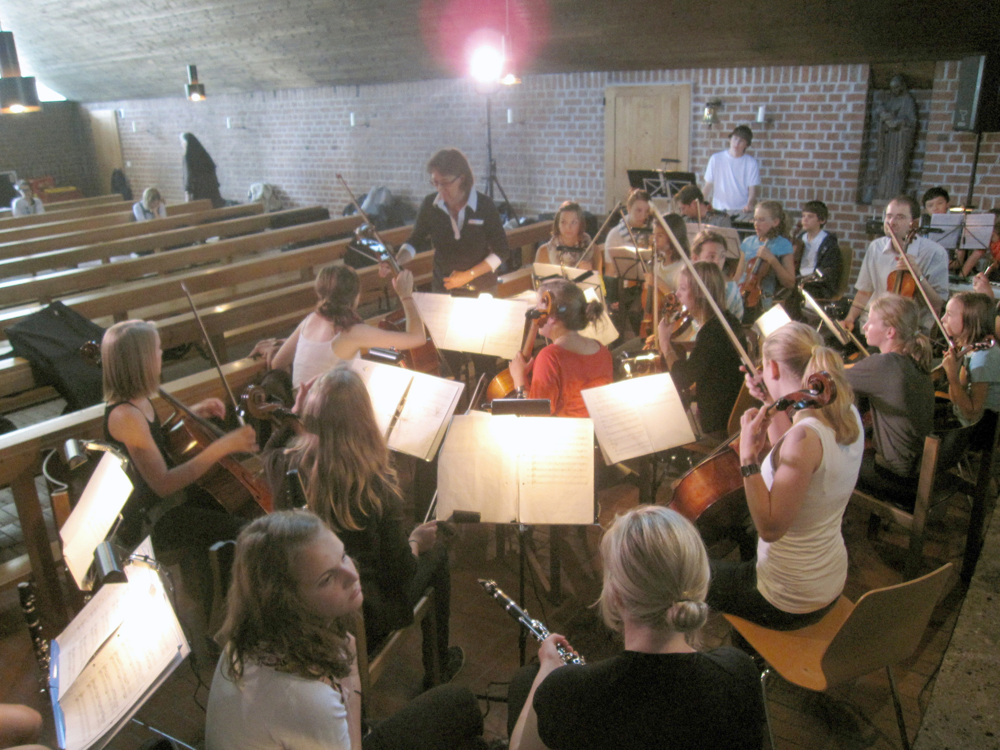 Dachau/Würzburg (POW) Rund 100 Schülerinnen und Schüler des Egbert-Gymnasiums in Münsterschwarzach haben ihr szenisches Oratorium „Häfner – Eine Entscheidung“ über den im Mai seliggesprochenen Pfarrer Georg Häfner am Ort seines Martyriums in Dachau aufgeführt. In der Kirche des an die KZ-Gedenkstätte angegliederten Karmelitenklosters spielten sie letztmals am 8. Juli das Werk, das sie im Rahmen der Seligsprechung bereits an den Lebensstationen Häfners, in Oberschwarzach und Würzburg, sowie in Münsterschwarzach aufgeführt hatten. Dabei agierten die Schauspieler und Musiker direkt vor einer Madonnenfigur, die zur Inneneinrichtung der Lagerkapelle gehörte und die das Leid der als „Himmelhunde“ und „Saupfaffen“ verunglimpften Priester gesehen hat – auch das des 1942 an den Folgen der Haft verstorbenen Georg Häfner. Die Schülergruppe des Egbert-Gymnasiums setzte mit ihren Lehrern damit einen Schlusspunkt unter ihre Auseinandersetzung mit Georg Häfner im zurückliegenden Schuljahr. Vor der Aufführung wurden sie durch die Gedenkstätte in Dachau geführt und konnten sich so ein noch genaueres Bild der Geschehnisse machen, von denen das Oratorium erzählt. Unter anderem sahen sie die Stelle, an der einst der Priesterblock Nummer 26 stand, in dem Häfner inhaftiert war. Ein Schaukasten im Innenhof des Klosters zeigt jene liturgischen Gegenstände, die von den Priester-Häftlingen notdürftig für ihre Messfeier im Lager angefertigt wurden.