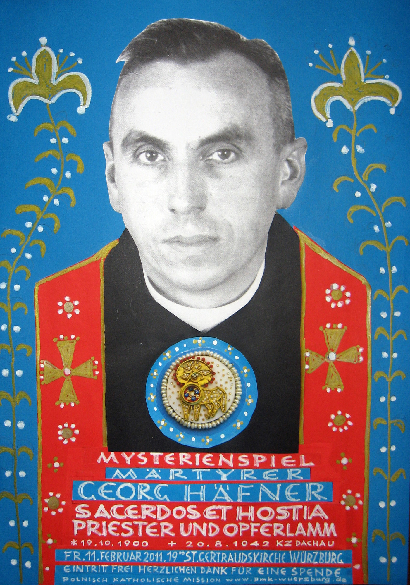Würzburg (POW) Ein Mysterienspiel über das Leben und Sterben von Pfarrer Georg Häfner unter dem Titel „Sacerdos et hostia – Priester und Opferlamm“ wird am Freitagabend, 11. Februar, um 19 Uhr in der Pfarrkirche Sankt Gertraud in der Unteren Pleich in Würzburg aufgeführt. Der Text stammt von der Kunsthistorikerin Fides Amberg-Hartmann, die Hymnen des Mysterienspiels komponierte Pfarrer Jerzy Sobota, Leiter der katholisch-polnischen Mission im Bistum Würzburg. Er leitet auch Schauspiel und Musik, die in deutsch-polnischer Kooperation umgesetzt werden.