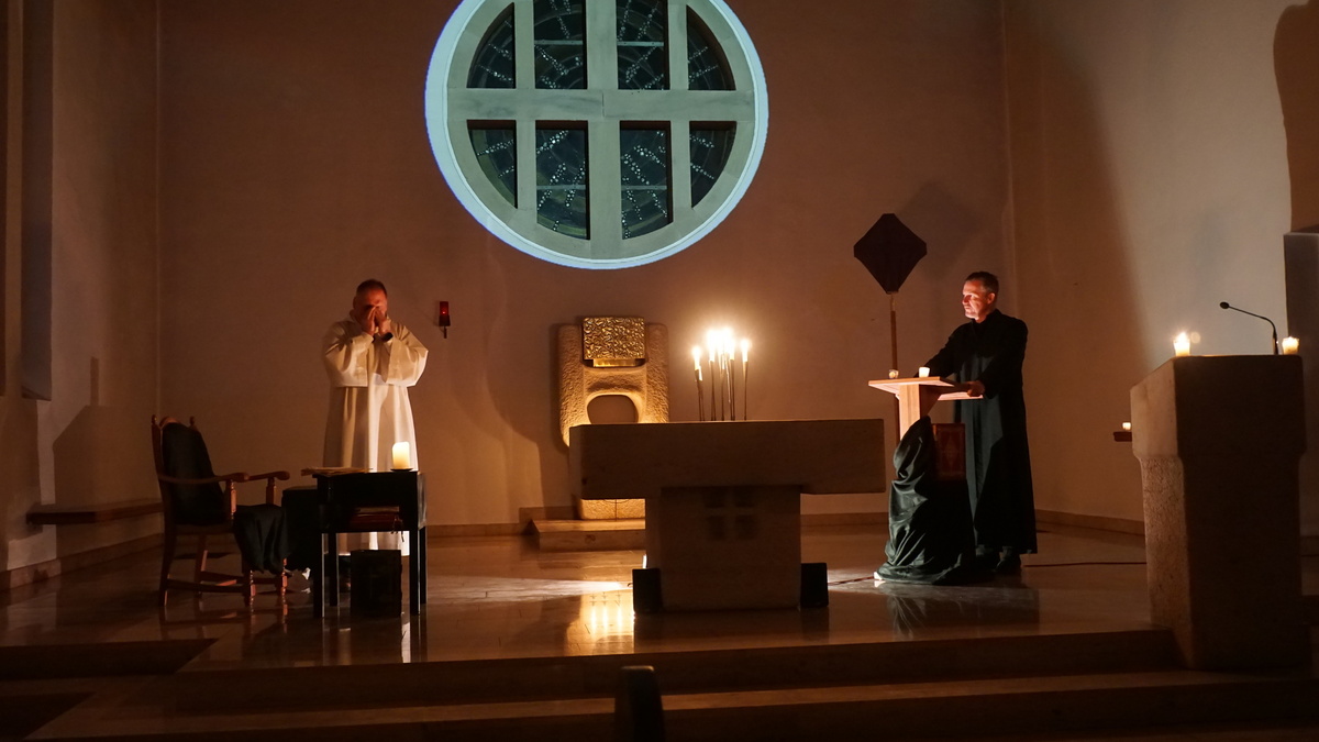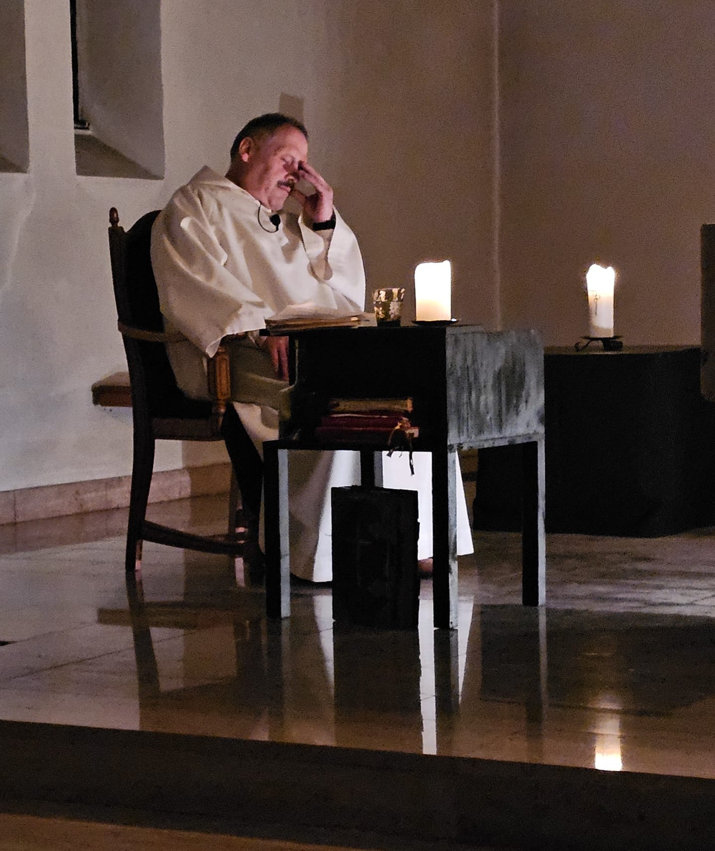Die nur spärlich beleuchtete Kirche und die kurz eingeworfenen Improvisationen an der Orgel, die manchmal leise und zart, dann auch wieder laut und gewaltig erklangen und die Szenen einrahmten, schufen eine intensive Atmosphäre, die für viele Menschen zur perfekten Einstimmung in die Karwoche wurde. Die Veranstaltung war sehr gut besucht. Anschließend ließen noch viele Besucher bei guten Gesprächen und einem Getränk den Abend ausklingen.