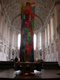 Würzburg/Münsterschwarzach/Volkach (POW) Ein ungewohntes Bild im Kiliansdom: ein über 15 Meter langes buntes Begrüßungstuch schmückt den Altarraum. Mit seinen vielen abstrakten Figuren zieht es sogleich die Blicke auf sich. Mit Dunkelgrün und Blau unten etwas dunkler gehalten, wird es nach oben hin mit sattem Rot und Gelb immer heller und freundlicher. „Das Tuch symbolisiert unseren Weg durchs Leben. Es beginnt ganz unten im Dunkeln und führt – am Ende sogar mit Stufen – ins Licht“, erläutert Benediktinerpater Dr. Jonathan Düring, Schulseelsorger am Münsterschwarzacher Egbert-Gymnasium, am Beginn des Pontifikalgottesdienstes zum Kiliani-Tag der katholischen Schulen am Montag, 9. Juli.