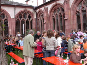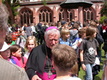 Markus Binzenhöfer, der am Egbert-Gymnasium Religion und Deutsch unterrichtet, hat die Messe eigens für diesen Tag komponiert. „Da sieht man mal, wie modern Latein sein kann“, meint Bischof Hofmann am Ende des Gottesdienstes, den er unter anderen mit Schulreferent Domkapitular Monsignore Günter Putz zelebriert. Die Gemeinde gibt ihm recht. Minutenlanger tosender Applaus belohnt Komponisten, Chorleiter, Sänger und Musikanten für ihren außerordentlichen Auftritt.