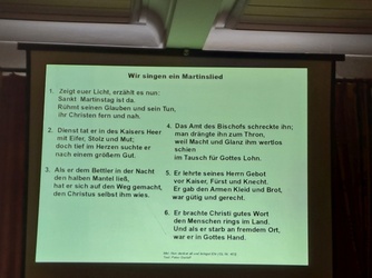 Pfarrer Simon berichtete passend zum Datum aus dem Leben und Wirken des Heiligen Martins. Durch Bilder, Daten, Anekdoten und Liedern, bei denen die Senioren eifrig mitsangen, von und über den Heiligen Martin, erfuhren die Anwesenden vieles, was den Meisten nicht bekannt war.