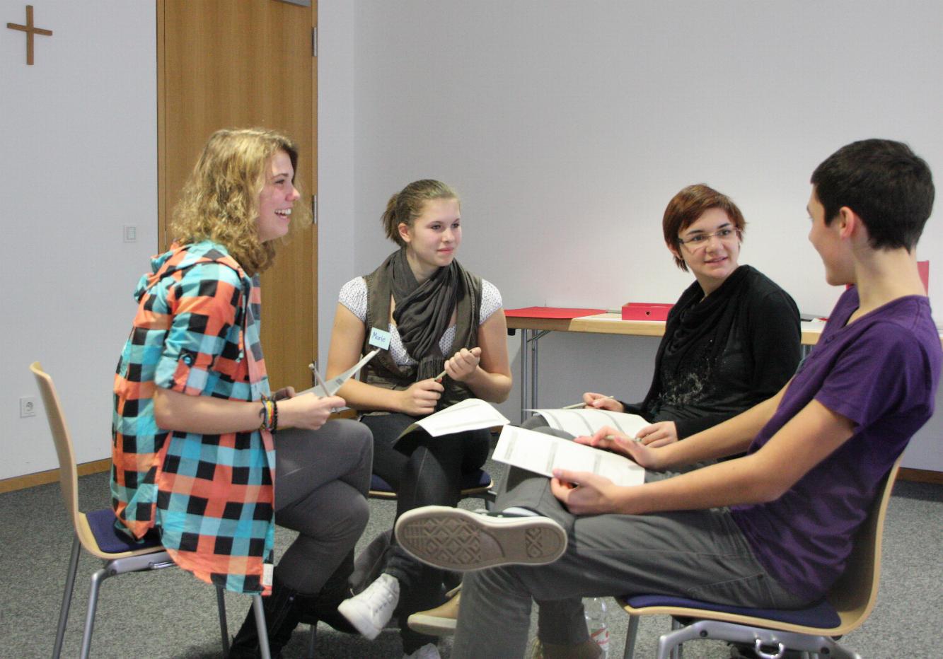 Viele der Jugendlichen, die ehrenamtlich bei diesem Projekt mitarbeiten, haben früher selber an so einem Wochenende teilgenommen. Jetzt lernten sie, wie man die Methoden einsetzt und gut reflektiert, damit sie wirklich auch Frucht bringen. Neben erlebnispädagogischen Elemente, eine Einführung in die Methode des Bibel - Teilens und Spiele zur Auflockerung sind auch der partnerschaftliche Leitungsstil und der klarer Umgang mit Nähe und Distanz zu den Teilnehmern Themen des Trainingstages. Die Teilnehmer des Stark-Trainings, unter ihnen viele, die zum ersten Mal bei diesem Projekt mitmachen, zeigten sich begeistert. Und natürlich kam auch die eigene Stärkung nicht zu kurz: am Ende des ‚Arbeitstages gab es Frei-Pizza für alle.