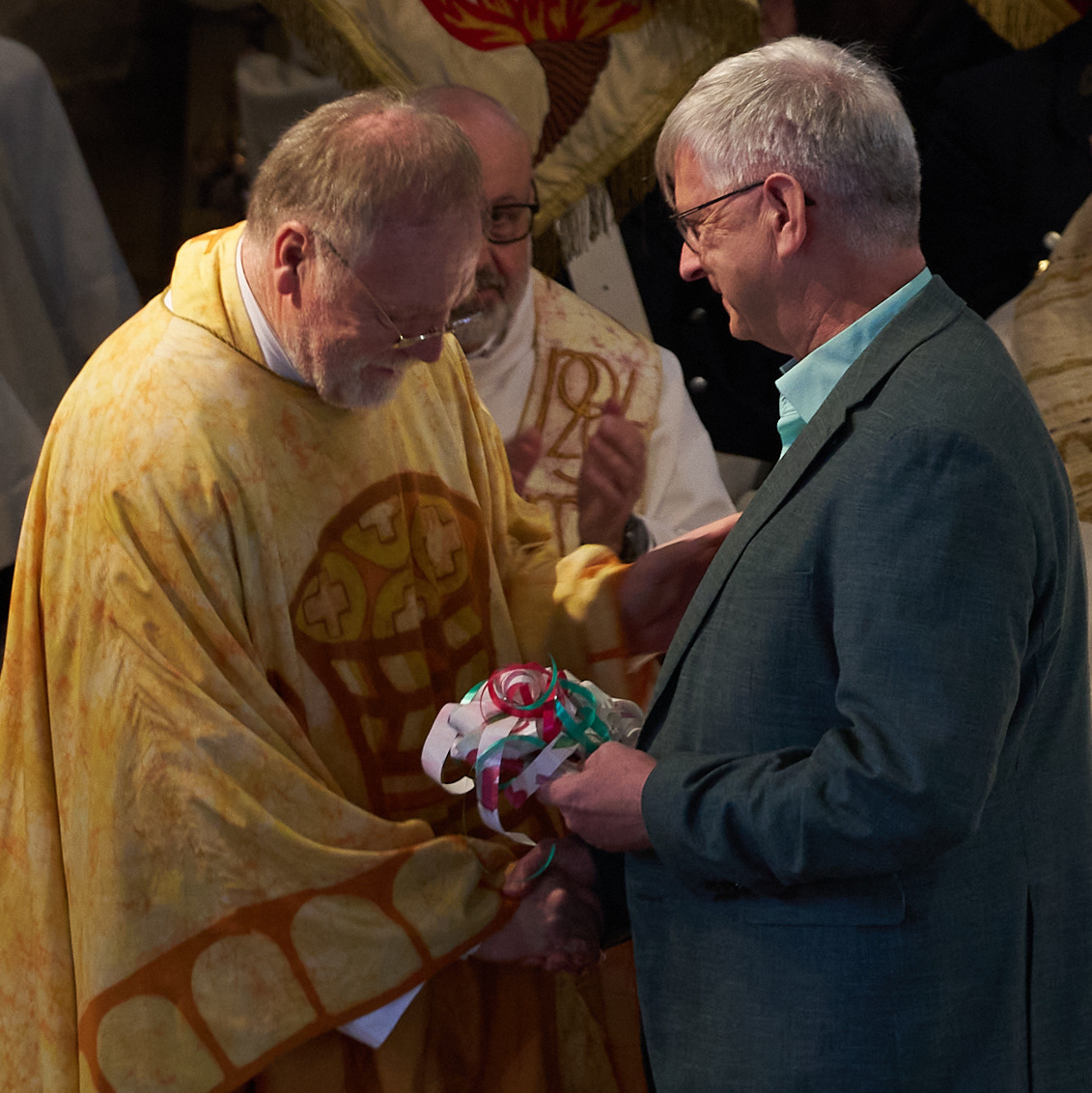 den Fahnenabordnungen, den Blaulichtorganisationen, die nicht nur in ihrer Sichtbarkeit sondern auch in ihrer Dienstbereitschaft zur Stelle waren, auch für das Ehrengeleit, dem Musikverein Hösbach mit ihrem Dirigenten für die Kirchenparade und die musikalische Begleitung während des Stehempfangs, den HelferInnen aus den vier Gemeindeteams und darüber hinaus beim Stehempfang, allen die dort noch im persönlichen Kontakt uns gute Wünsche und Geschenke mit auf den Weg gaben, denen die von Seite der politischen Gemeinde, wie aus den kirchlichen Gremien schon im vor hinein so viel geplant, entworfen, organisiert- und so für einen so schönen Rahmen gesorgt haben.
