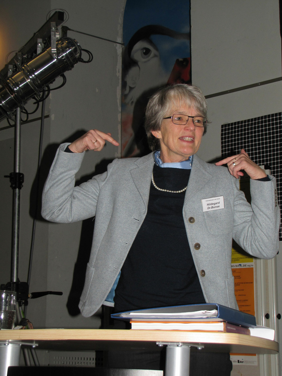 Dazu war Dr. Hildegard Bonse (Stuttgart) als Referentin eingeladen, die sich im Rahmen einer Promotion mit genau dieser Frage intensiv auseinandergesetzt hat. Motiviert und geprägt von persönlichen leidvollen Erfahrungen hat sie dafür eine Reihe von Interviews mit Jugendlichen geführt und sie nach deren Erfahrungen - auch in der Schule - befragt. Gerade dieses Authentische verlieh dem Vortrag eine besondere Note und Tiefe. In Kleingruppen konnten die Teilnehmer/innen anschließend das Gehörte mit den eigenen Erfahrungen in Zusammenhang bringen. Zehn auf dem Hintergrund ihrer Erfahrungen zusammengestellte Thesen regten dann die Diskussion und zum Transfer auf den eigenen (Schul-)Alltag hin an. Fazit: Alle Teilnehmer/innen waren einhellig der Meinung, dass es ein gewinnbringender Tag gewesen war und dass es im kommenden Jahr wieder eine solche Veranstaltung geben soll.