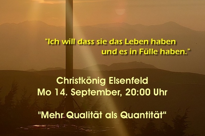 In regelmäßigen Abständen wird in der Christkönigkirche in Elsenfeld ein Abendlob, das als Luzernarium (=Lichfeier) gestaltet ist, gefeiert. Die Andachtsreihe in 2026 steht unter dem Motto "Ich will, dass sie das Leben haben und es in Fülle haben".