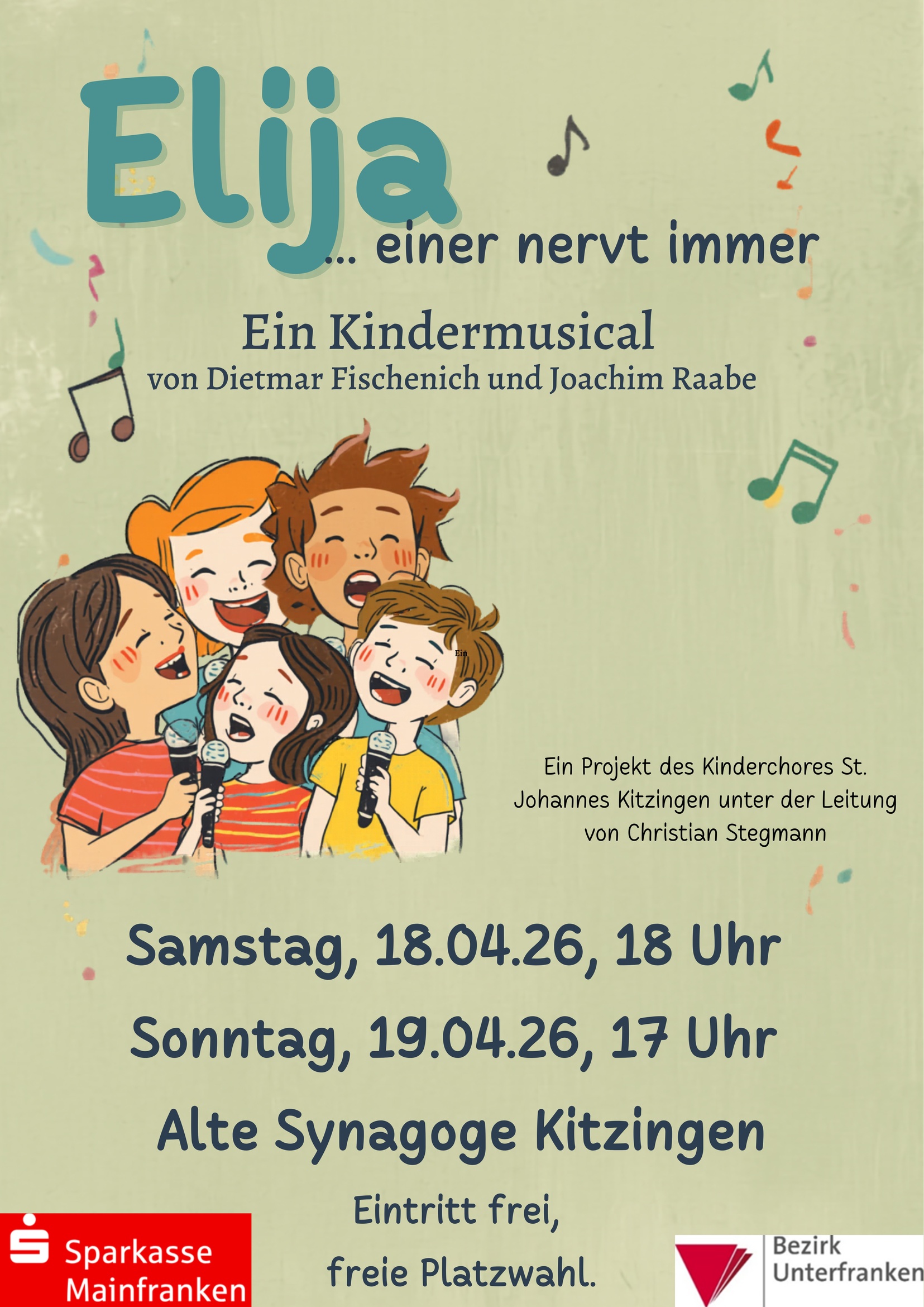 Etwa 25 singende und schauspielende Kinder sowie eine Band bringen das Musical gleich zweimal zur Aufführung: Am Samstag, den 18. April um 18 Uhr sowie am Sonntag, den 19. April um 17 Uhr, jeweils in der Alten Synagoge in Kitzingen.