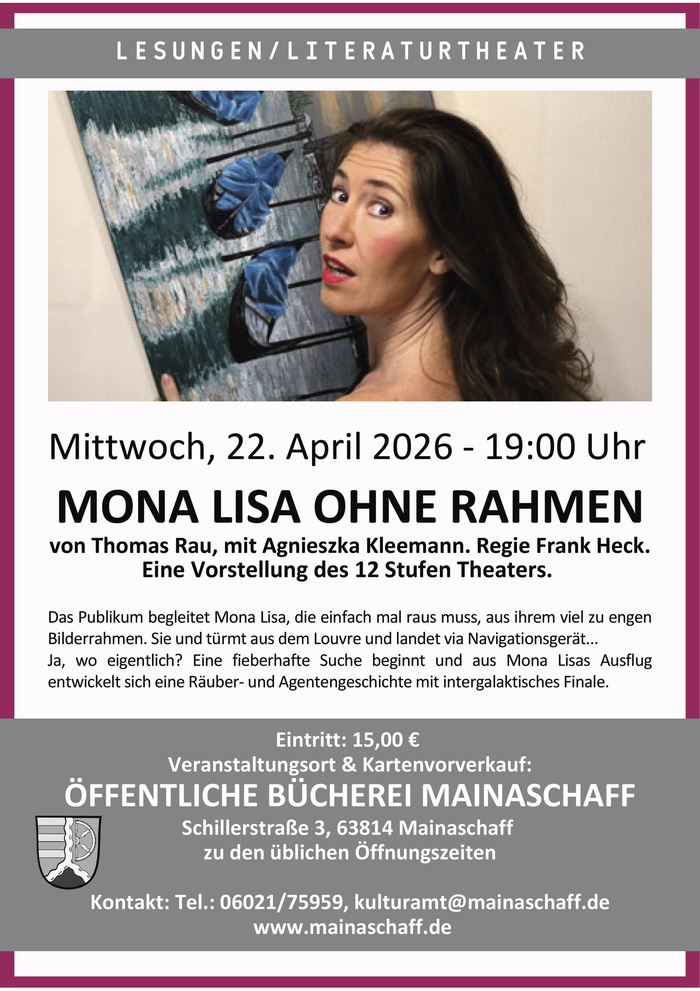 Das Publikum begleitet Mona Lisa, gespielt von Agnieszka Kleemann, die einfach mal raus muss, aus ihrem viel zu engen Bilderrahmen. Sie türmt aus dem Louvre und landet via Navigationgerät...Ja, wo eigentlich?