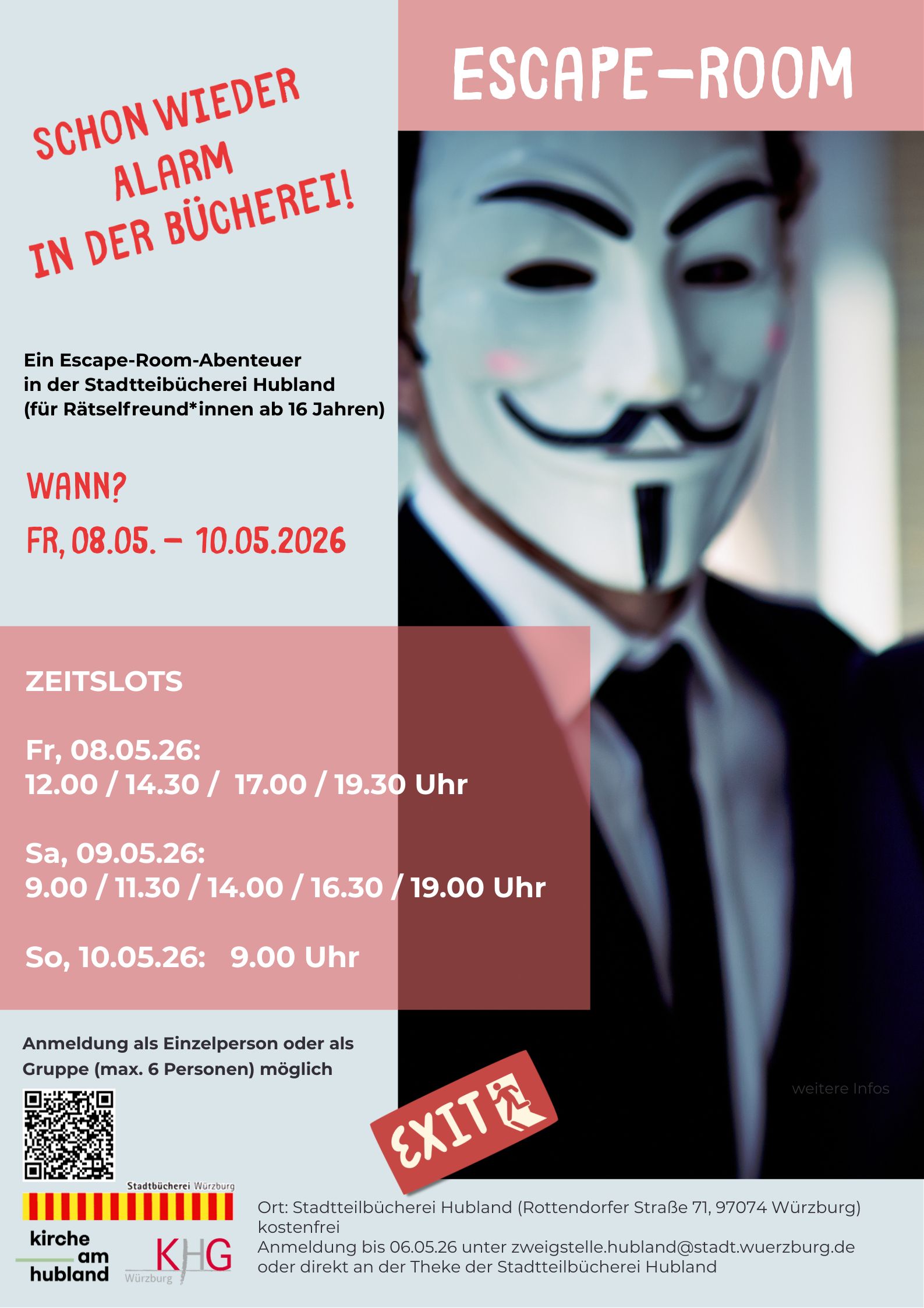 ANMELDUNG bis Mi, 06.05.26 unter zweigstelle.hubland@stadt.wuerzburg.de oder direkt an der Theke der Stadtteilbücherei Hubland