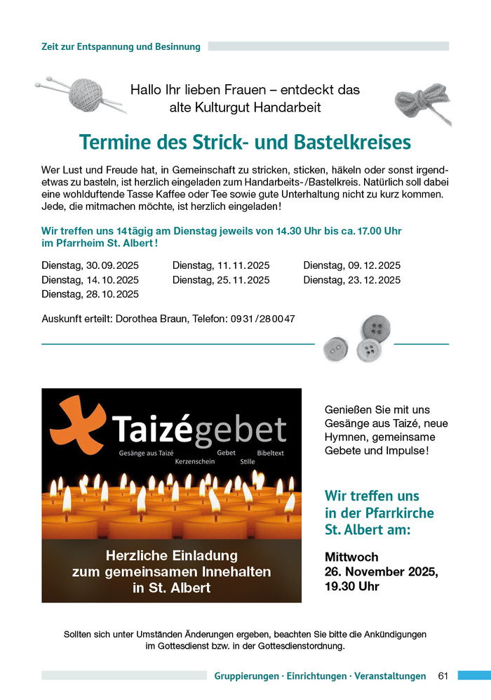 zu basteln, ist herzlich eingeladen zum Handarbeits- /Bastelkreis. Natürlich soll dabei